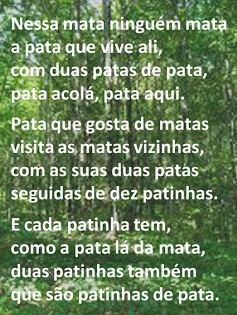 Ler o poema [É um poema “simples”, mas de leitura difícil] com apenas seis letras: duas consoantes [d, n] e quatro vogais [a,e,i,o]. Combinadas entre si, formam as quatro palavras que compõem o poema [anda, ainda, aonde, onda]. Parece um trava-línguase podes lê-lo de muitas maneiras: rápido ou devagar; a rir ou a choramingar, com alegria ou com irritação, etc.]